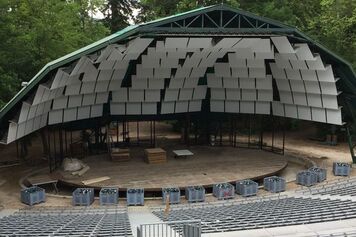 Construction d'une coquille acoustique sur toute la largeur de la scène du Théâtre de Nature du BOURGAILH. Ce projet d'intérêt général a pour but de construire une structure permettant de renvoyer le son du spectacle vers le public, de protéger les artistes et leurs matériels des éléments météorologiques.